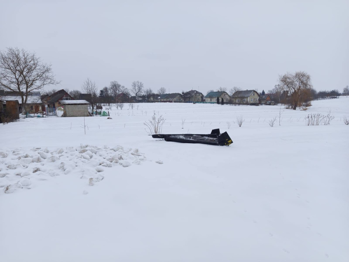 Фото - в одному із сіл Стрийського району неподалік від приватних будинків у полі виявили ворожий безпілотник, 17 лютого 2026 р./сторінка Максима Козицького у телеграмі