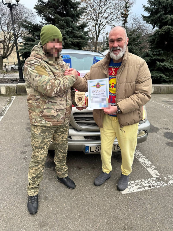 Цей автомобіль супроводжував особисто Голова Благодійного фонду з Литви, Raimundas Lumbis Lietuva, який сьогодні мав особисто вручати техніку представникам військової частини.