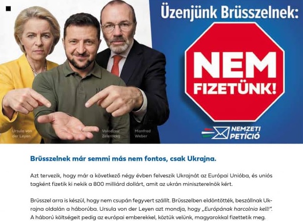 «Брюссель також готується не тільки постачати зброю. У Брюсселі вирішили вступити у війну на боці України. Урсула фон дер Ляєн каже, що «Європа повинна воювати!». А витрати на війну будуть оплачувати європейці, серед яких і ми, угорці. Брюссель приховує від європейців очевидний факт, що Україна ніколи не поверне сотні мільярдів євро допомоги. Брюссельські бюрократи готуються забрати у європейців і у нас, угорців, сотні мільярдів, обіцяних Україні», – зазначено у тексті петиції.