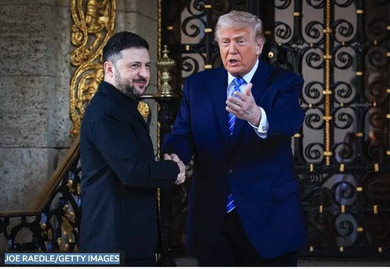 У Флориді, в Мар-а-Лаго, триває зустріч Володимира Зеленського з Дональдом Трампом про умови завершення війни росії проти України. Перед зустріччю лідери виступили з заявами та відповіли на запитання преси. Трамп сказав, що мирні перемовини, на його думку, на завершальному етапі.
