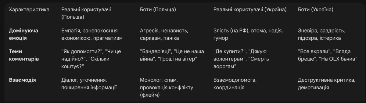 Таку неоднозначну з першого погляду – 7 млн злотих за пару тижнів, але відкриваєш пост поляка про збір на генератори для України, а там в коментарях тонни негативу, зневіри та агресії. Потім прийшла черга українських «генератори не доїдуть/все вкрадуть» – і пазл склався. Я відкрила вручну 10 коментаторів хейтерів під постом про збір від поляка і 10 від україньских новин – 9 поляків були схожі на ботів і 8 українців – теж.