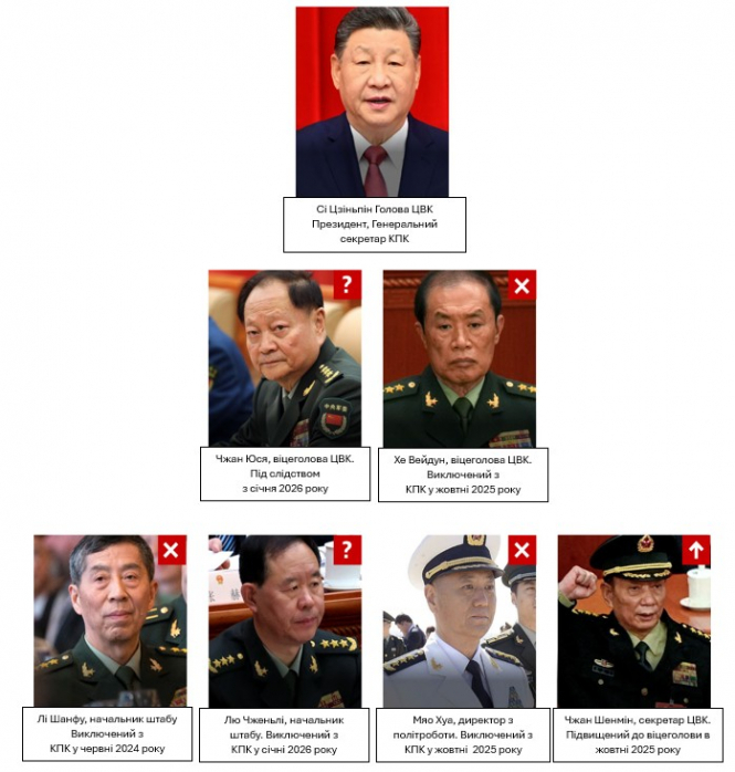 Китай переживає безпрецедентну кризу у вищому військовому керівництві: під слідство потрапив генерал Чжан Юся, найближчий військовий соратник президента Сі Цзіньпіна та друга людина в командуванні Народно-визвольною армією Китаю. Серед підозр, про які повідомляють західні медіа, – можливий витік даних про ядерну програму до США та корупція, що ставить під сумнів стабільність китайського військового командування в критичний момент напруженості навколо Тайваню. В опублікованому перекладі з західних медіа на сайті iPress йдеться про те, що із семи членів Центральної військової комісії, призначених у 2022 році, п'ятеро вже потрапили під антикорупційні розслідування, що свідчить про глибоку кризу довіри у верхівці китайської армії.