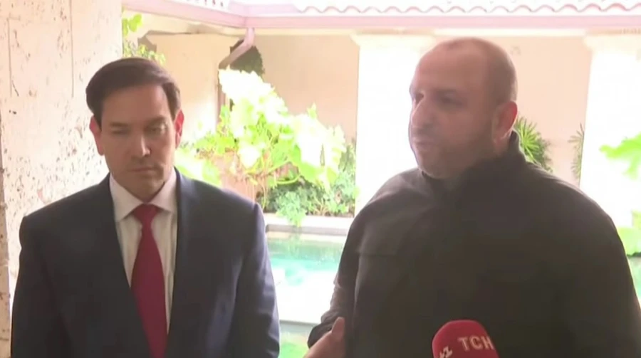 Фото - секретар РНБО, очільник української переговорної групи Рустем Умєров та держсекретар США Марко Рубіо коментують результати переговорів у Флориді 30 листопада 2025 р./скриншот УП