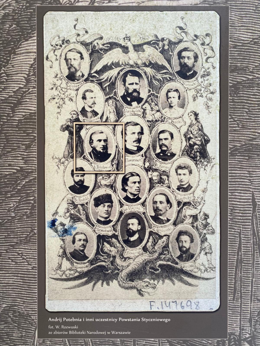 «Тут спочиває шістдесят п'ять невідомих повстанців 1863 року і серед них академік Стефан Залевський й українець Андрій Потебня - колишній офіцер російських військ та соратник Олександра Герцена. Вічна слава бійцям за нашу і вашу свободу!».