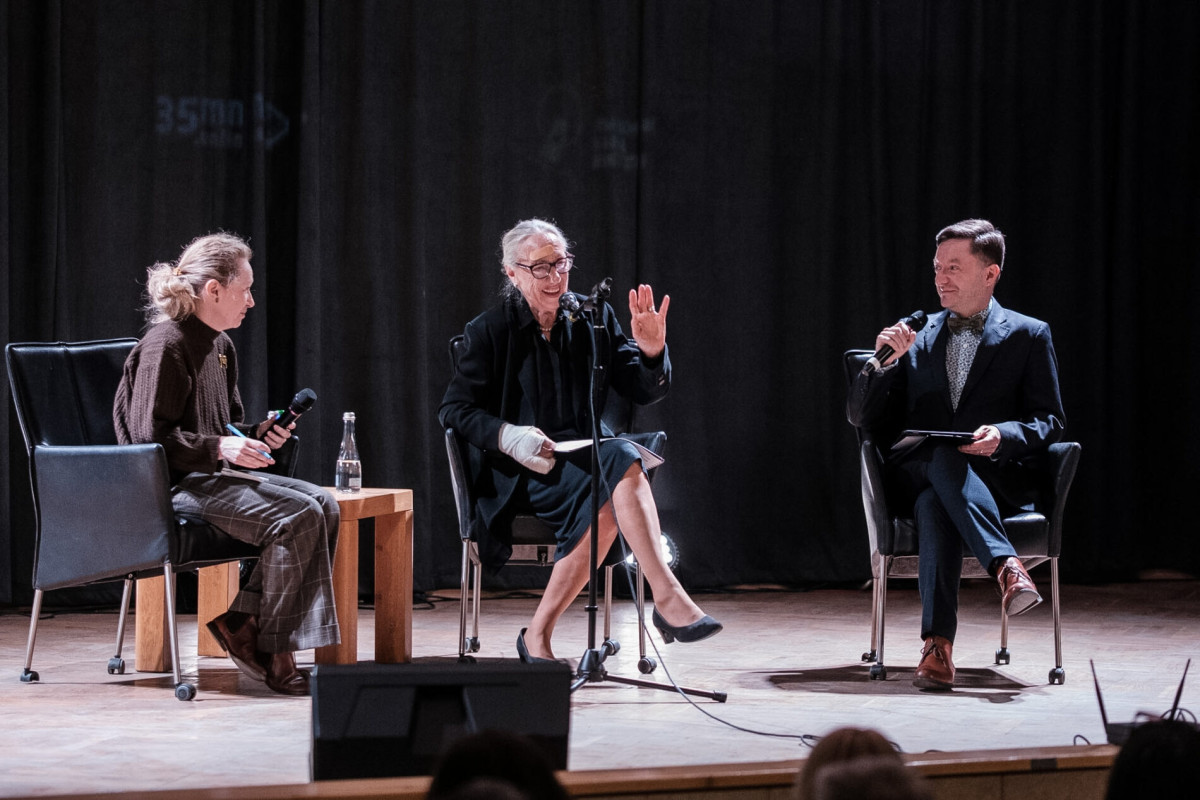 Під час майже годинної розмови акторка ділилася спогадами про роботу з Анджеєм Вайдою, зокрема над фільмом «Панни з Вілька», розповідала про атмосферу на знімальному майданчику, читала вірші та відповідала на запитання глядачів. Модератором зустрічі виступив український поет, перекладач і літературознавець Остап Сливинський.