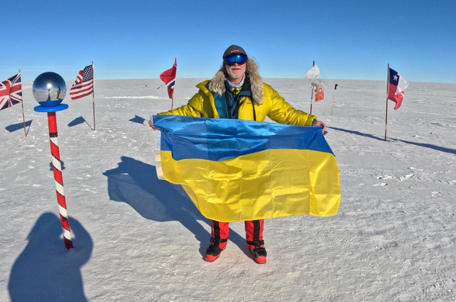 Фото - 14 січня 2025 року латвійський альпініст, письменник і волонтер Юріс Улманіс досяг Південного полюса і розгорнув там український прапор/Юріус Улманіс